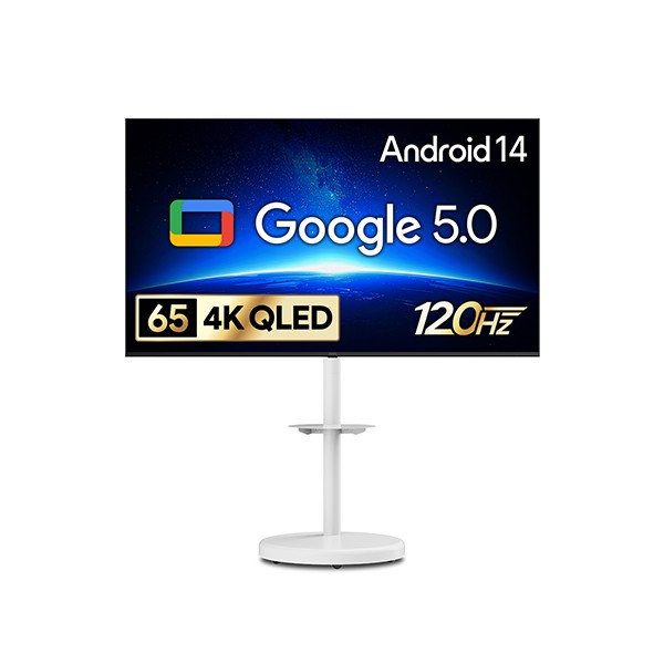 [더함]스마트 구글 5.0 OS 안드로이드 14 QLED TV 65인치 120Hz+이동형스탠드