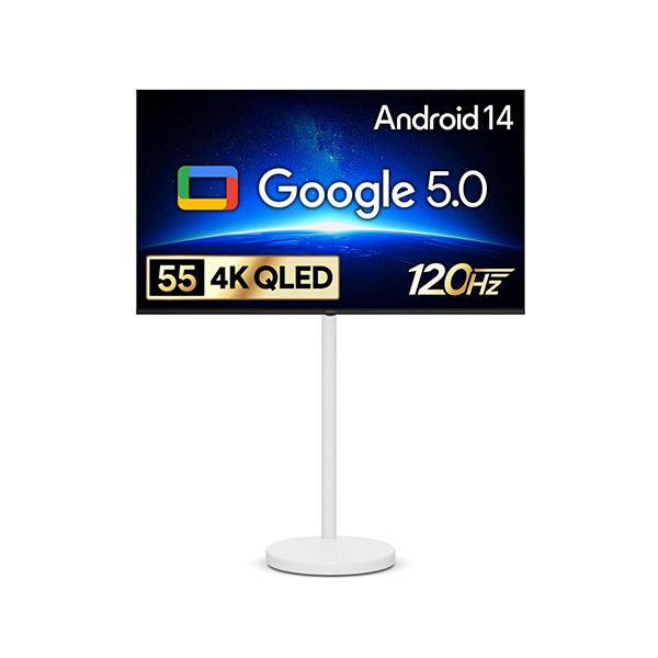 [더함] 스마트 구글 5.0 OS 안드로이드 14 QLED TV 55인치 120Hz+이동형스탠드